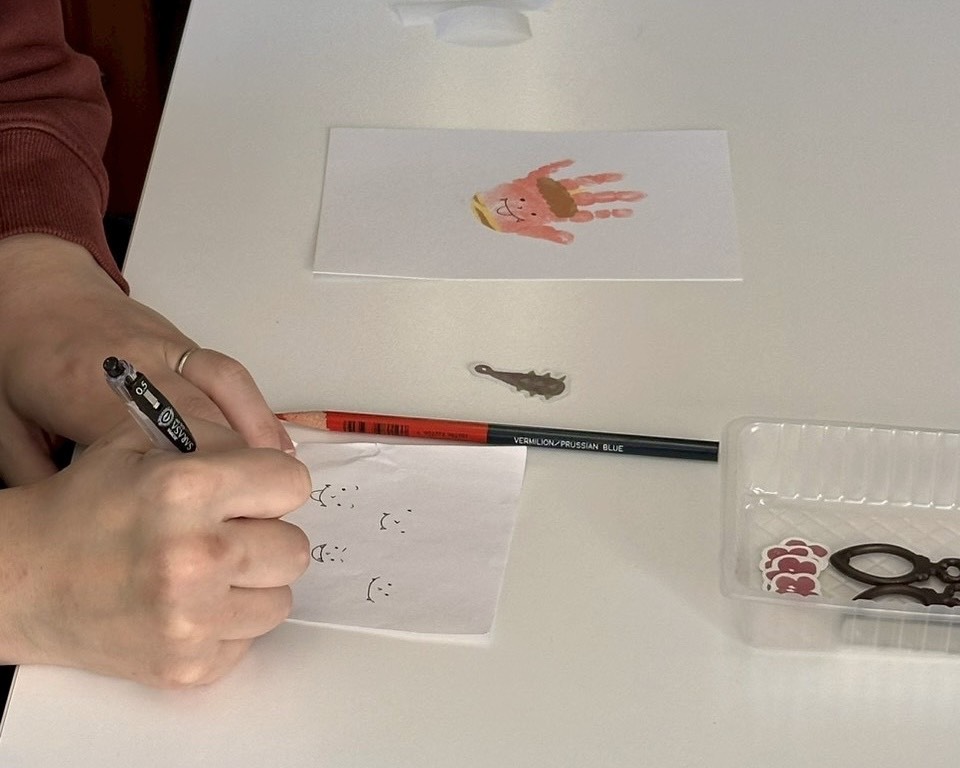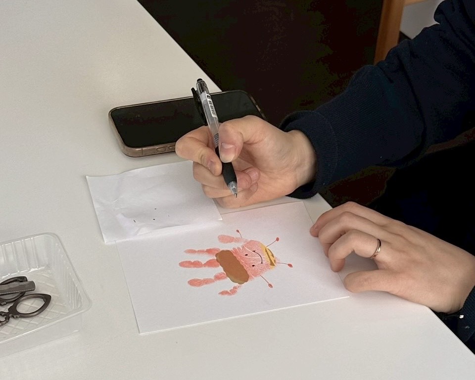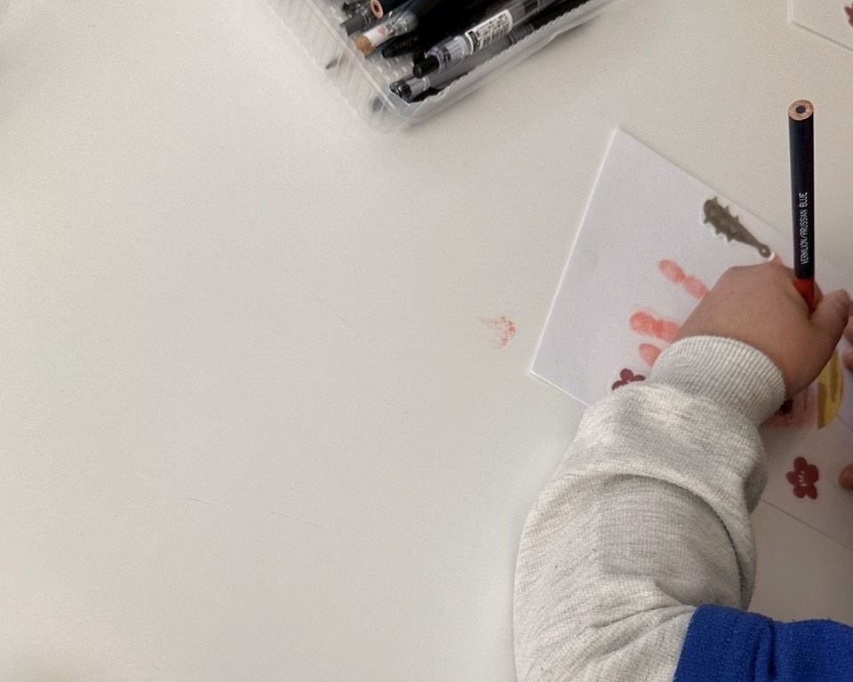 その後は、手形に合うサイズの鬼のパンツシールを貼ったり、ペンでお絵描きやデコレーションをしたりと、夢中になって作っていました♪